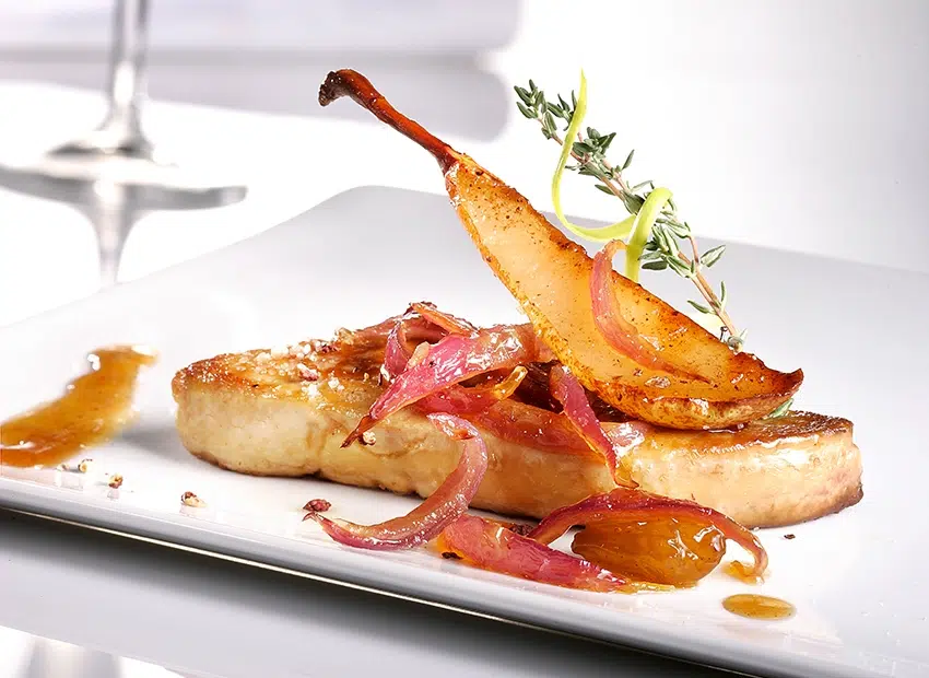 Cette recette d’escalope de foie gras avec poires et oignons caramélisés offre un équilibre délicat entre la richesse du foie gras, la douceur des poires et la saveur sucrée des oignons caramélisés.