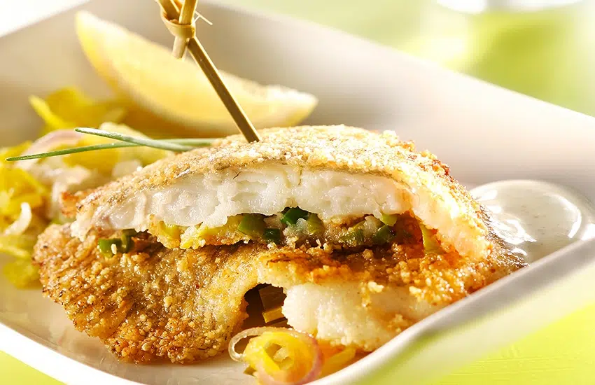 Trempez les filets de plie dans un peu de ce jus de poireaux, salez et poivrez, puis enrobez-les de chapelure. Poêlez-les dans l’huile, 5 min. sur chaque face.