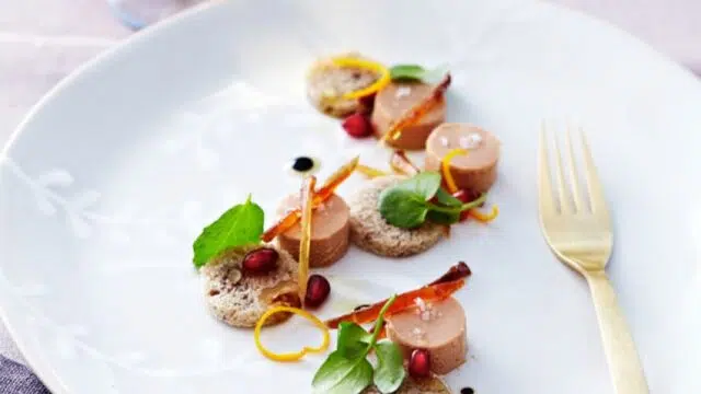 6. Servez le foie gras en tranche, sur du pain d’épices, accompagné de confiture d’oignons.