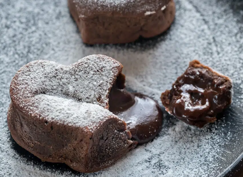 Si vous ne pouvez pas laisser la préparation au moins 1h au réfrigérateur, placez-la 10 min. au congélateur. C’est le seul moyen pour que le cœur reste fondant à l’intérieur.