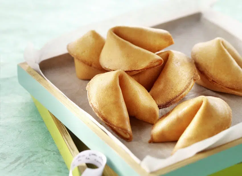 Placez les messages au centre de chaque cookie, pliez 2 fois et laissez refroidir.
