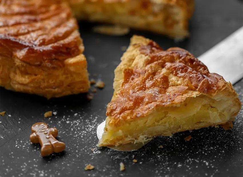 Badigeonnez le dessus avec un mélange jaune d’œuf /eau, réalisez un dessin à votre convenance et enfournez une vingtaine de minutes. Surveillez la cuisson (la galette doit être bien dorée sur le dessus et le dessous).