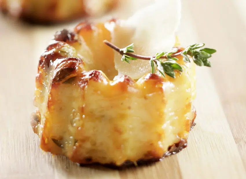 Décorez d’une lamelle de parmesan et d’un brin de thym