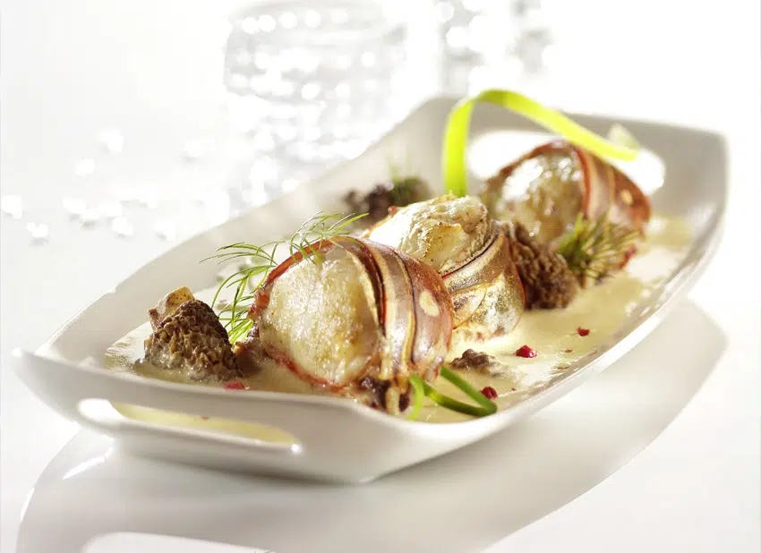 Retirez la langouste et réservez dans un plat de service au chaud. Passez la sauce au chinois, au-dessus des morilles, et cuisez 5 minutes. Nappez la langouste et servez.
