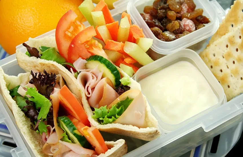 Complétez la boite à tartine avec des bâtonnets de carottes crues et de pommes vertes, quelques fruits secs, un yaourt et des crackers