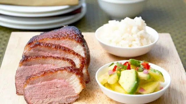 Poitrine de porc laqué et braisé