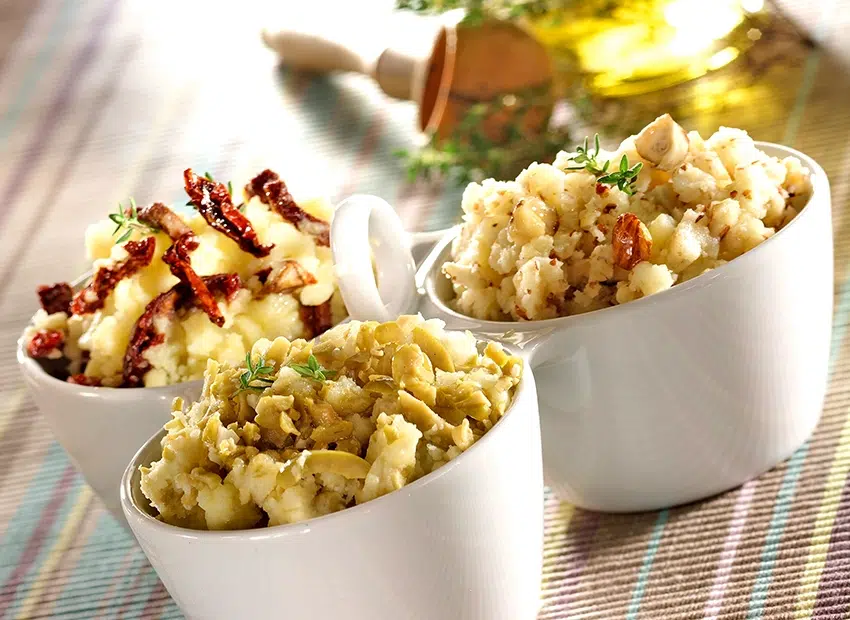Purée de pommes de terre aux 3 parfums (tomates, olives, noisettes)