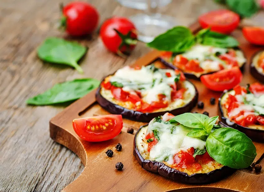 Une fois les aubergines cuites, déposez mozzarella et basilic et enfournez encore 10 min.