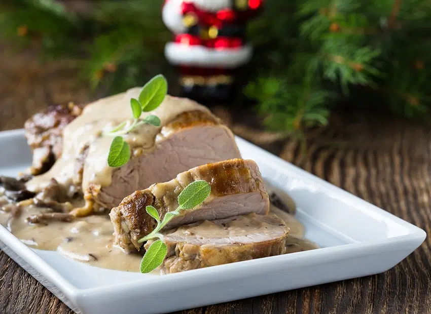 Rôti de porc, sauce aux champignons