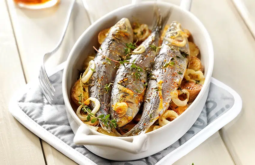 Déposez les sardines sur le lit de légumes, couvrez d’eau à hauteur et laissez cuire à couvert, sur feu doux, environ 25 min.