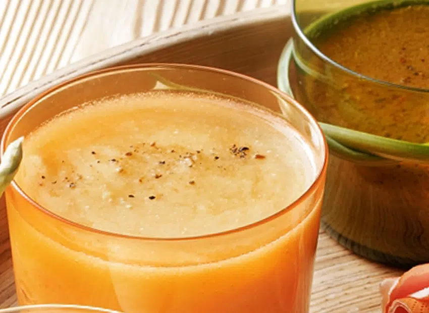 Ajoutez les tomates pelées, épépinées et coupées en petits morceaux. Ajoutez le jus de citron, l’huile, le sel et le poivre. Mélangez le tout, puis ajoutez 50 cl d’eau chaude et mélangez à nouveau.