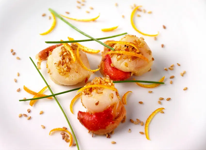 St Jacques à l’orange sanguine et graines de sésame