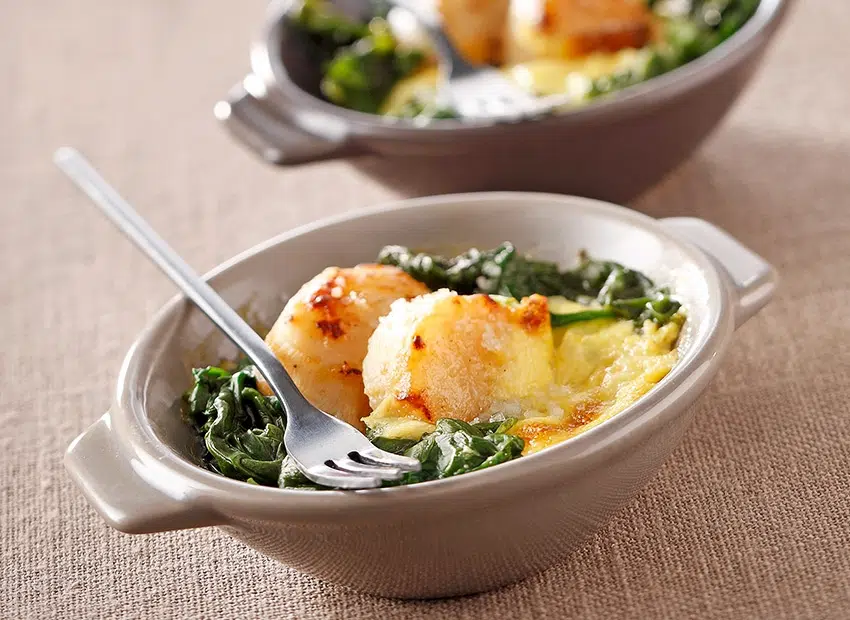 Faites dorer les St-Jacques dans le beurre restant, 1 min. sur chaque face et posez-les sur les épinards.