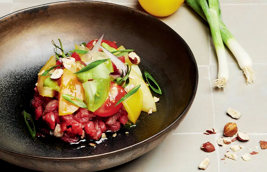 Plongez dans l’univers gastronomique avec notre Tartare de Bœuf, une symphonie de viande fraîche, de condiments délicats et d’une salade de tomate vibrant de saveurs. Suivez nos instructions détaillées pour créer ce plat raffiné qui séduira les amateurs de viande crue et de sensations fraîches. Bon appétit !