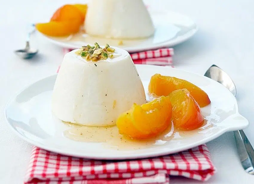 Timbales au fromage blanc, compote d'abricots à la vanille et à la cardamome