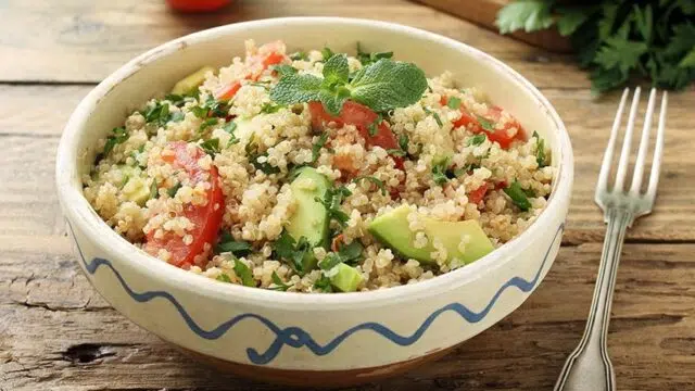 Salade de quinoa, avocat, tomate, menthe