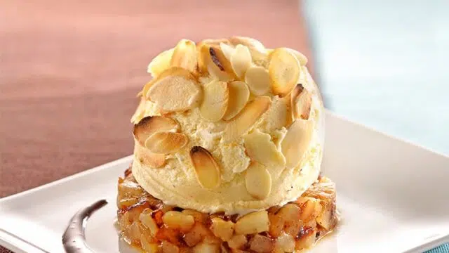 Crumble de fruits exotiques et glace pistache